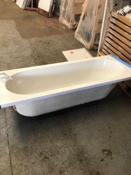IFLO Bath set Includes: BRETON ACRYLIC BATH OT IN WHITE SIZE 1500X700 COMPLETE WITH FRONT PANEL (1500), END PANEL (700) AND BERESFORD SILVER FOLDING SHOWER SCREEN (Clear Glass) ( pictures may show a Left side bath - for illustration purposes). New un used still on pallet - will require accessories