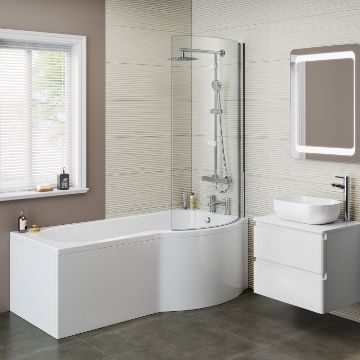 BERESFORD LH 'P' SHAPED BATH SHOWER SCREEN, this lot is for a Left hand bath ( pictures may show a Left side bath - for illustration purposes) SCREEN ONLY . New un used still on pallet