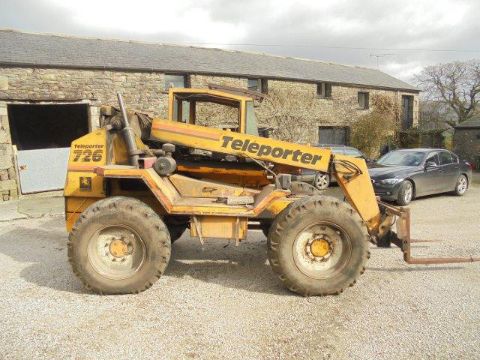 ** LOT WITHDRAWN ** 1993 Sanderson Teleporter 726. 1993 Sanderson Teleporter 726 Solo Control. Starts, runs, drives and lifts. Joystick control. Multifunction steering (working).Average condition - front and side glass missing. Scruffy interior and exterior.
