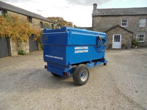 Towable Bunded Fuel Tank With Petrol Pump. Agricultural chassis with lift-off 1200L bunded diesel tank, petrol engined pump and delivery hose. Excellent condition. Quick detachable tank with built-in pallet fork sockets.Honda petrol engine is an instant, easy starter. Has been used for red diesel.
