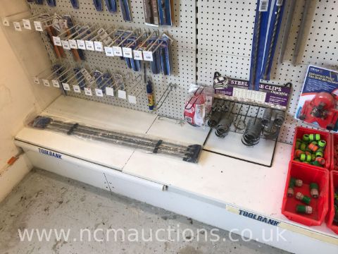 Display rack plus mixture of tools Including drillbits water pump adapter spraygun for hosepipe
