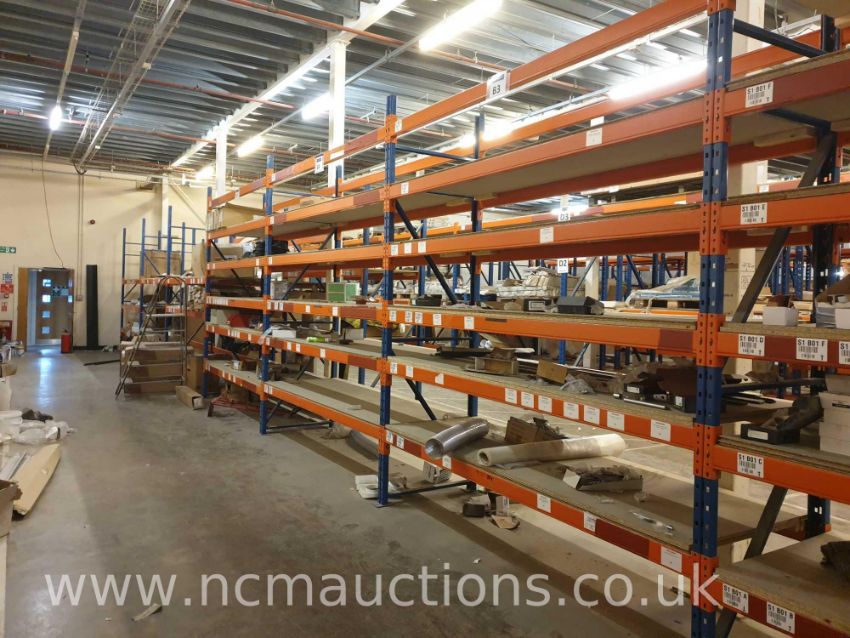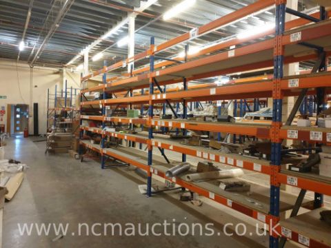 Racking Set including : 8 x 3m / 900mm deep uprights / 62x 2.7m beams. See photos. Buyer responsible for taking down racking. Contents of shelves not included.