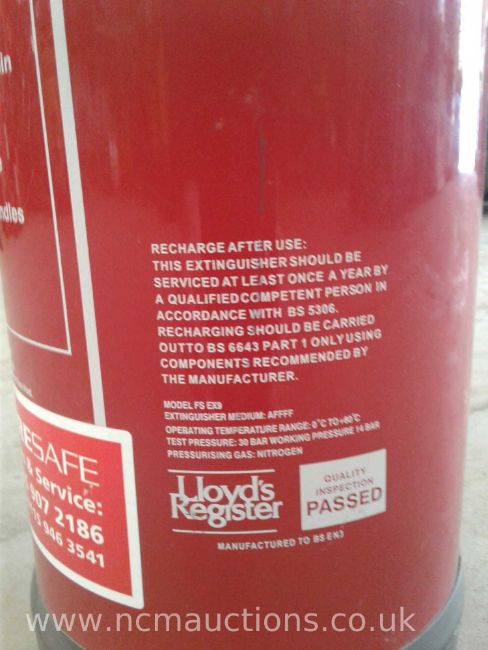 9l foam spray fire extinguisher working when tested model number FS EX9 next service date 09/19