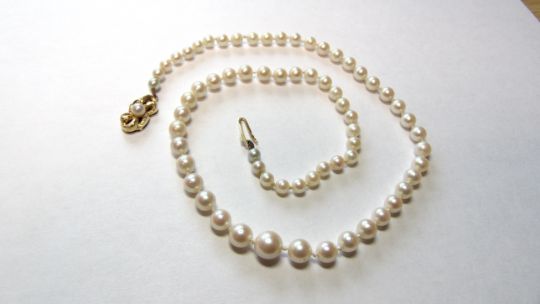 18" Single String of Cultured Pearls on Clasp Stamped 750, Weight 18g.