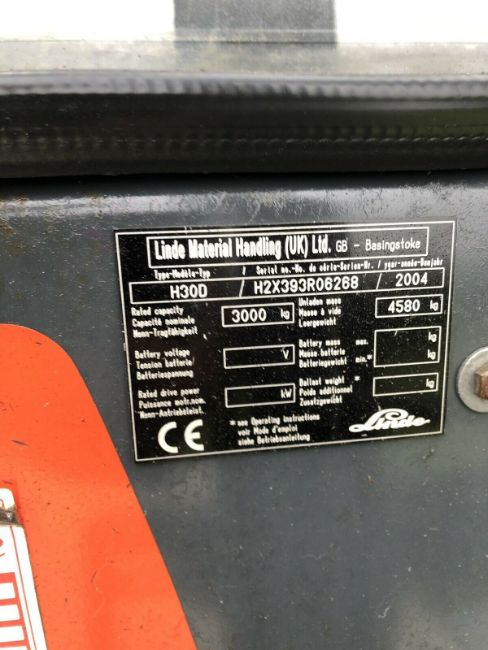Linde H30D Diesel Forklift. Twin wheel. 3000 Hours. 4.2 meter mast with side shift