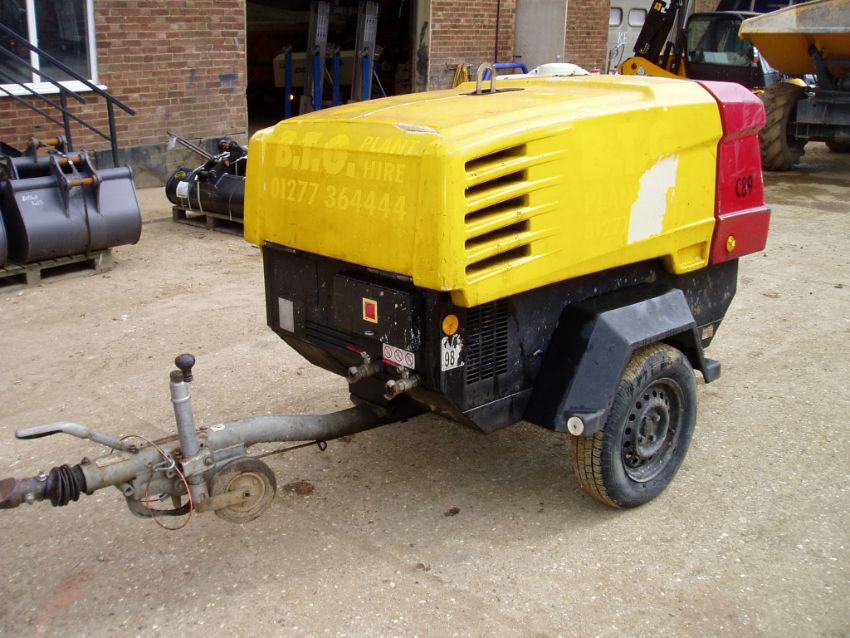 Serviced, tested and ready for work. Has been re-painted.makes air, good working order and in towable condition.