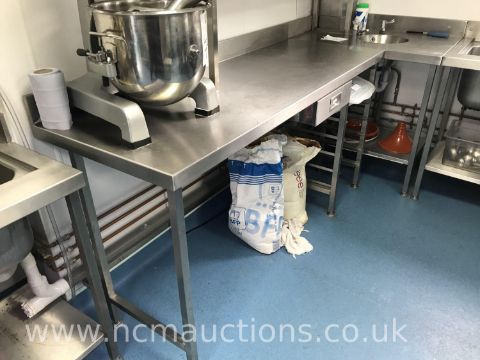 Stainless Steel Prep Table Wash Basin Built in to Table 1 Draw 7 Tier Tray Holder Under Storage Approximately H 1.029m L 1.039m W 2.505m (Mixer / Catering Equipment / Stock / Food Not Included)