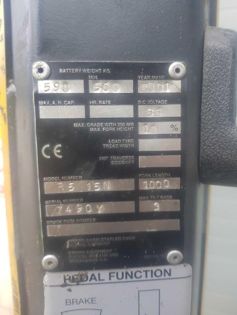 Electric reach truck Model R5 15N Year 2001 Hours 1135 Capacity 1155kg