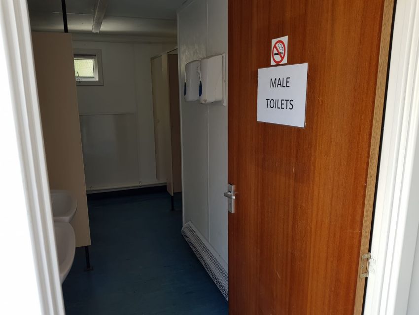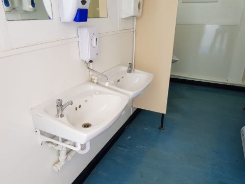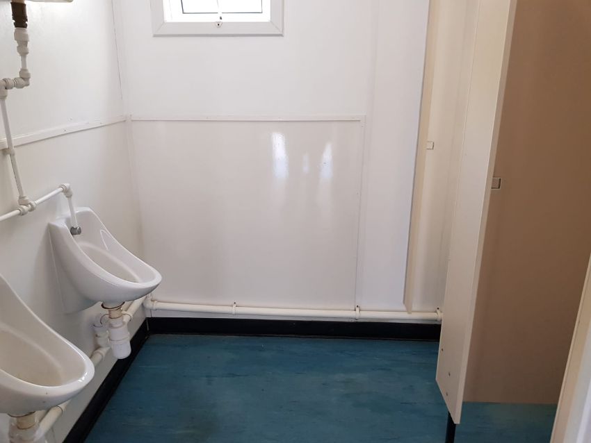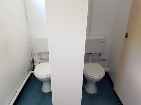 32ft x 10ft Canteen / Toilet Block (Refurbished) Comes with: Centre Door, Male toilets (2 x cubicle 2 x urinal 2 x Basin) Female toilets ( 1 x cubicle 1 x basin) Canteen ( Basin unit with sink, Hot water, Consumer unit) and comes with Jack Legs and Wire mesh window covers. This unit has been refurbished to a high standard. Loading available.