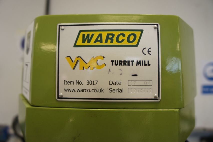 Warco VMC turret mill with additional collets and tooling, as lotted