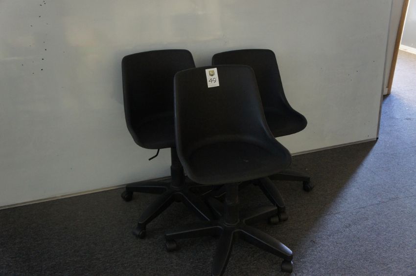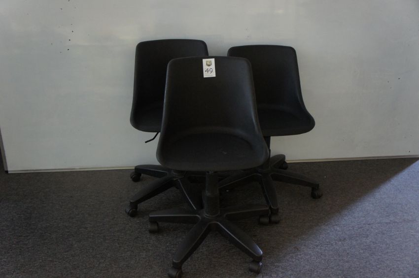 Set of 3 Pinnacle PS11C black poly swivel chairs on five arm castor