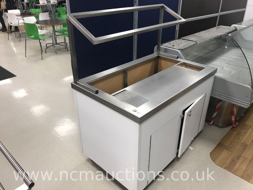 Catering Serving Counter Stainless Steel Top Wood sides and front Storage cupboard Approximately H 1.52 L 0.90 W 1.32m