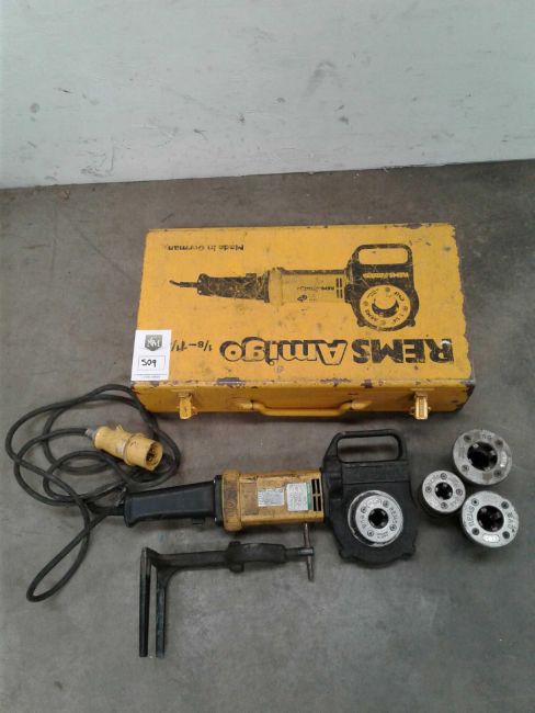 Rems amigo handheld threading machine working when tested complete with 4 dies and pipe clamp