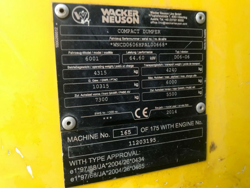 Wacker Neuson 6 Ton Swivel Tip Dumper