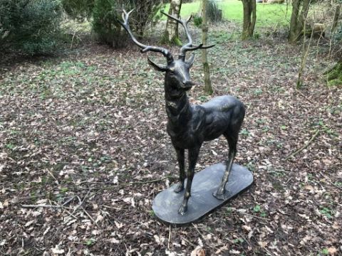 LARGE CAST IRON STANDING STAG IN BRONZE FINISH