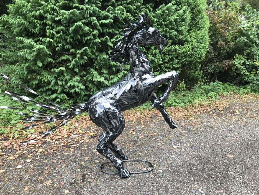 PACKAGED NEW LARGE METAL FABRICATED REARING HORSE