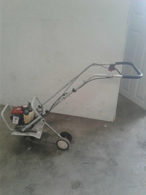 Emak petrol rotavator runs but needs attention to wheels and fuel spares or repairs
