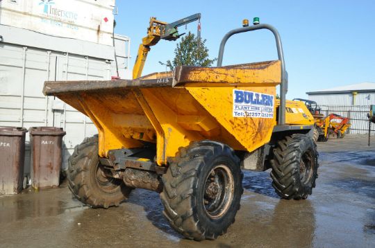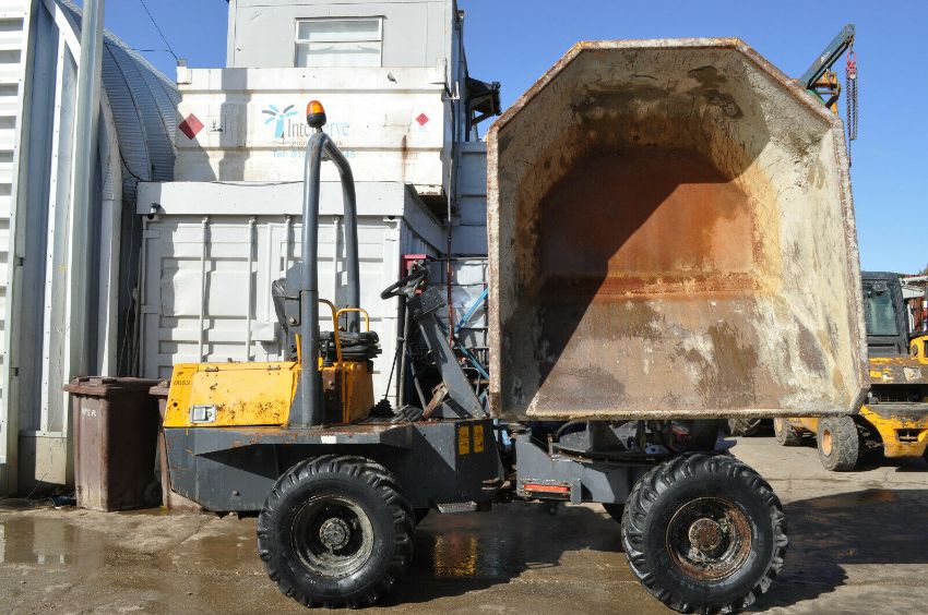 Terex TA3S Dumper Year 2011 2214 Hours 4x4 Swivel 4 cyl Kubota Diesel engine 32.4kw Manual gearbox Payload 3000kg Dimensions (LxHxW)mm: 3790 x 2660 x 1840 Folding rollbar Towing bracket Good tyres