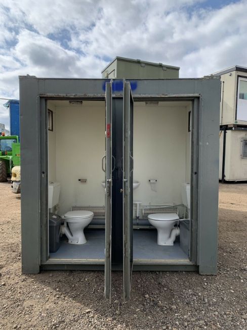Anti Vandal Steel Portable Toilet Block 16ft x 8ft Fitted with lights, heaters, sinks, hot water boilers, hand dryers. 3 x Toilets for the Men’s + Urinals. 2 x Toilets for Women’s.