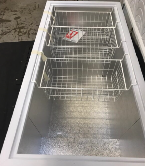CF Commercial Chest Freezer, 527 litre, stainless steel lift-up lid with handle & lock, -22° to -11° C temperature range, defrost water drain, (3) wire baskets, hammered aluminium interior, white exterior, R134a refrigerant, 230v/50/1-ph, 211 watts, MEPS C