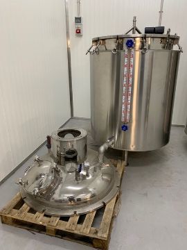 Jacketed Cooking Vessel with Surface Scraper, Motor and Controls. Material - Stainless Steel, Capacity - 1000L, Heating Source - Steam, Agitator Power - 2.2kw, Voltage - 3 Phase/415v/50Hz, Stirring Speed - 22r/min, Inlet Diameter - 300mm, Outlet Diameter - 57mm.