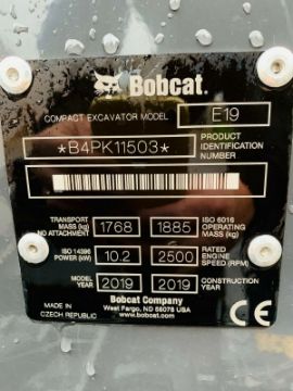 Bobcat E19 Excavator 2019. 3 Buckets. Expanding Under- Carriage. 2 Speed Tracking. Good Tracks. Piped. CE Marked