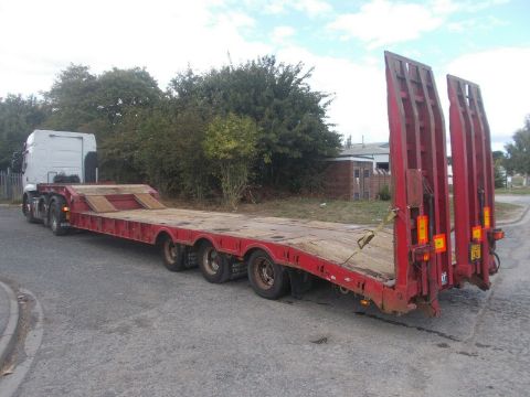Raise / lower. MOT TILL September 2020. Good brakes, Outriggers, Neck ramps. 13.2 metres long by 2.5 wide. 38000kg gross weight. 41000kg under special types. 17.5" tyres. Lashing rings on trailer bed. Chain storage on neck and on main deck