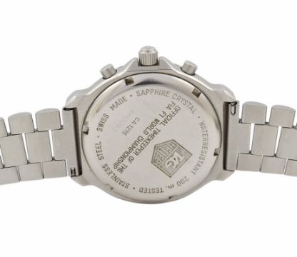 Tag Heuer F1 Chronograph, Year 1990's, Case measures 38mm in diameter and 42mm from lug to lug. Original Tag Heuer stainless steel strap with double folding clasp s/n 493/3 and measures approximately 7.1” or 18cm. The watch comes with an original box (insert had to be replaced) but no papers.