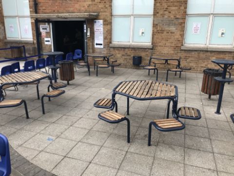 x1 Outside Seating With TableAlso Standing Table With Bin All Cemented Into Ground