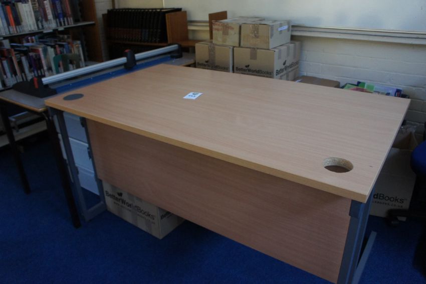 Miscellaneous lot comprising, cantilever frame desk, side table, bookcase, gas lift chair (damaged), Novus paper cutter