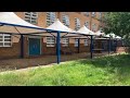 Tubular steel frame Zenith canopy comprising, 5 x minaret style canvas canopies, 5900mm x 5000mm to 2500mm to eaves