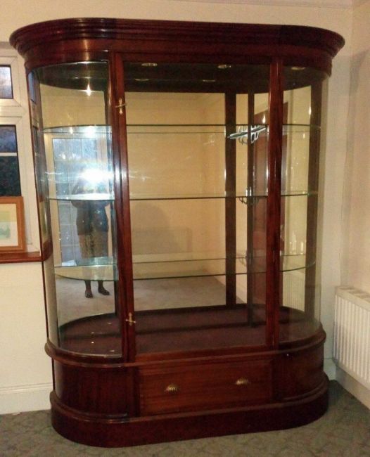 MAHOGANY GLAZED AND BOWED EXCELLENT QUALITY LARGE DISPLAY CABINET