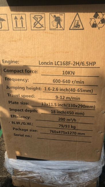 King Force KRM160L 6.5hp Wacker Trench Compactor/ Rammer BRAND NEW never been used still in shipping cageCompact force: 10KN. Frequency: 600-640 R/Min. Jumping height: 1.6-2.6 inches ( 40-65mm). Travel speed: 9-12 M/min. Plate size: 13 X 11.5 inch (330 X 290mm). Impact depth: 18inch (450mm). Efficiency: 200 M2/H. Net weight: 79KG. Gross weight: 93KG 2 available Lot is for 1 only