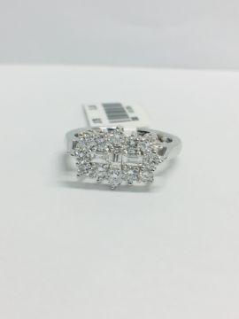 9K White Gold Cluster Style Ring, 1.00CT round and baguette diamonds,h colour,si3 clarity,nice cut,3.30gms 9ct white gold,uk size L,uk hallmark,condition new