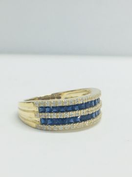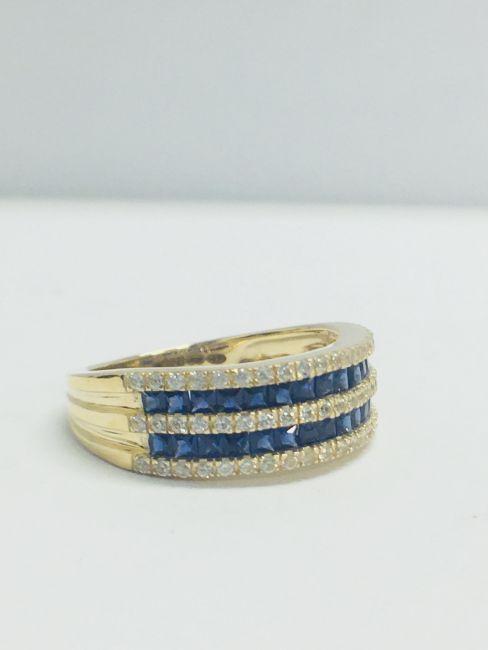 9CT YELLOW GOLD LADIES SAPPHIRE WHITE SAPHIRE RING,SQUARE CREATED SAPPHIRE & WHITE SAPPHIRE,3.20GMS 9CT YELLOW GOLD,UK SIZE M,UK HALLMARK,CONDITION FINE