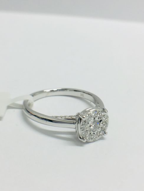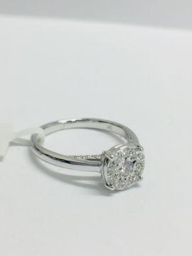 9CT White Gold illusion style Diamond Ring with a diamond set band.diamond colour HI,clarity I1, 37 Diamonds, 0.28CT diamond weight,2.45gms 9ct white gold,uk size L,uk hallamrk 2019,condition new 2.24 G