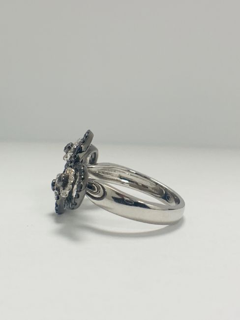 18ct White Gold Diamond Ring Featuring 80 Round Cut, Black Diamonds (0.61ct TBDW) grain set, with 42 round cut, white Diamonds (0.25ct TWDW), grain set.