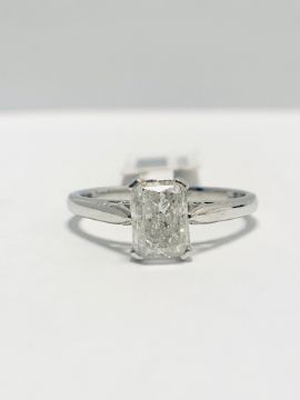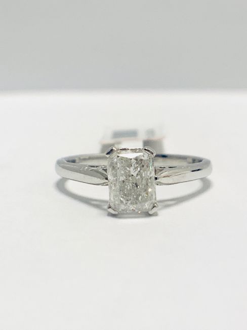 1ct Radiant Cut Natural Diamond.g colour,i2 clarity,platinum setting 2.9gms,uk hallamrk 2019,uk size L,condition good,diamond is tested as clarity enhanced.