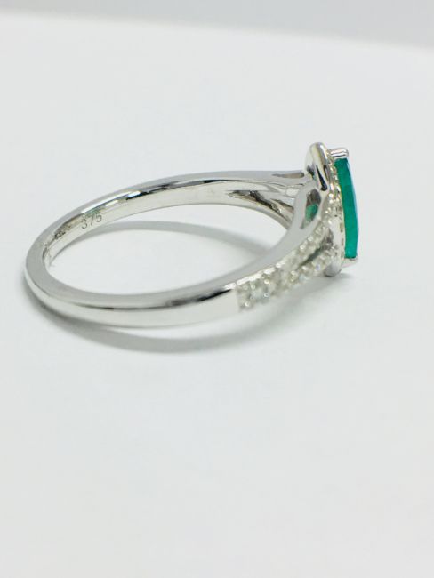 58 Round Diamonds,0.25Ct H Coloured Si2 Clarity, 1 Emerald 0.68Ct Marquis Cut Natural Stone 2.67 Gms 9Ct White Gold,Uk Size L,Uk Hallmark