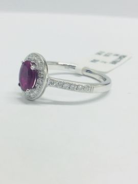 28 Round Diamonds H Colour Si Clarity 0.33Ct, 1 Natural Ruby 1.00Ct,3.50Gms 18Ct White Gold ,Uk Size L,Uk Hallmark 2018 3.50 Gms 18Ct White Gold