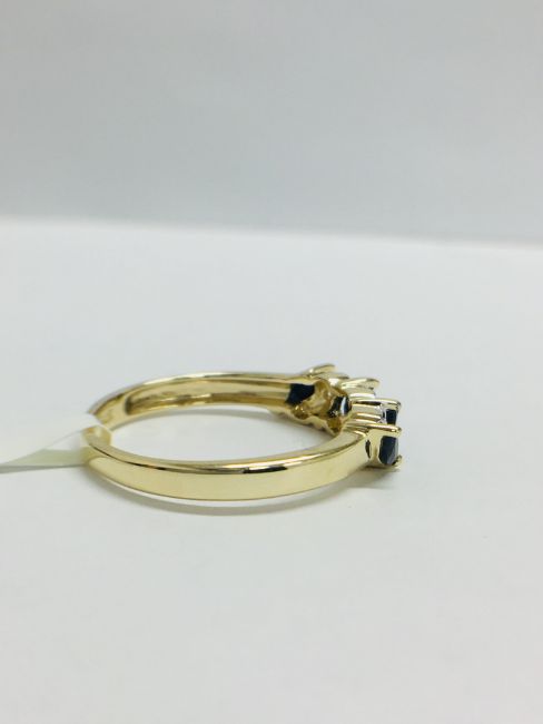 9CT Yellow gold Sapphire diamond Eternity Ring,single Cut diamond /0.01CT, 4 Sapphire /0.36CT,1.65gms 9ct gold,uk size K,uk hallmarknew