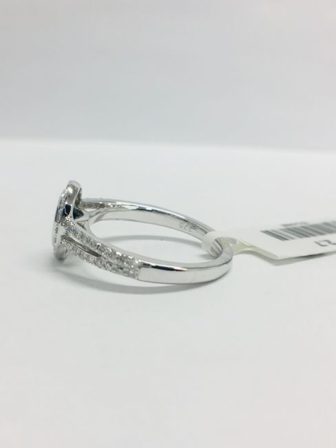 56 Round Diamonds,0.28Ct,H Colour,Si2 Clarity,1 Spphire Natural Oval 0.53Ct,2.73Gms 9Ct White Gold,Uk Size L,Uk Hallmark 375,Condition Unsused