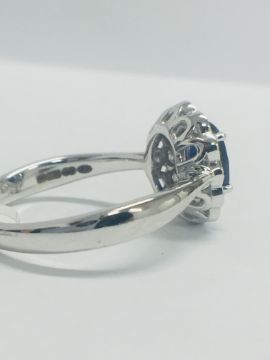 12 Round Diamonds ,0.41,H Colour Si2 Clarity, 1 Sapphire Oval Natural,1.10Ct,3.40Gms 18Ct White Gold,Uk Size L.Uk Hallmark 2019 London,Condition Unused.