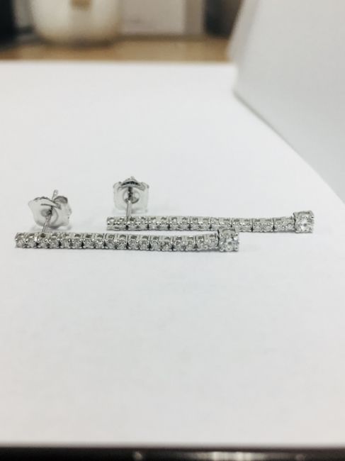 19 x 0.03ct ,2x0.20ct h si grade diamonds set in 18ct white gold drop earrings,uk manufacture uk hallmark,length 2.5” .