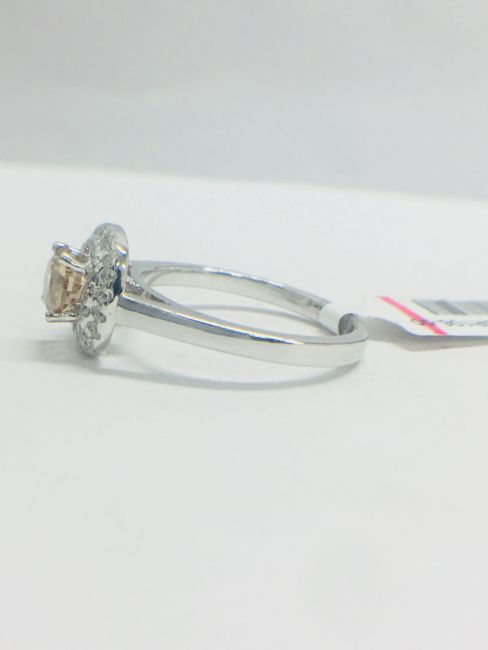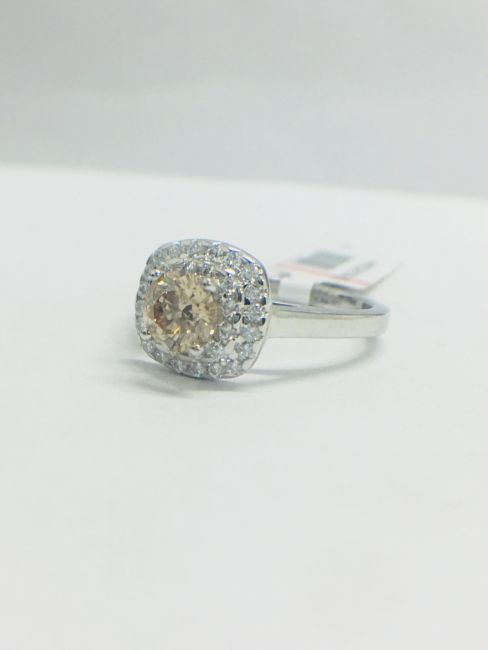0.70ct Brilliant cut Diamond,Cognac fancy colour,vs2 clarity,6.7gms platinum,32 round diamonds,G colour,VS clarity,0.32ct,uk london hallmark 2018,uk size L,Diamonds are natural,condition new
