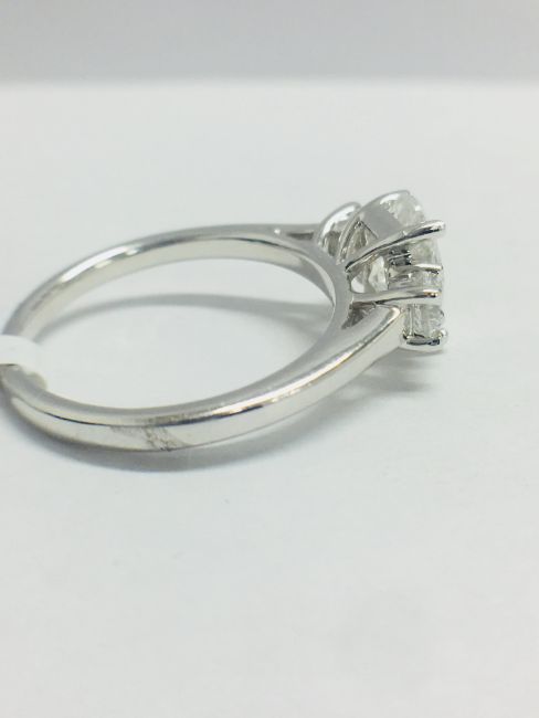 1 ct oval cut diamond centre,h colour,si2 clarity,excellent proportions,two 0.25ct Brillant cut Diamonds,H colour,Si2 clarity,5.2gms platinum 950,uk London hallmark,uk size L, 2018,Condition New,diamonds are clarity enhanced