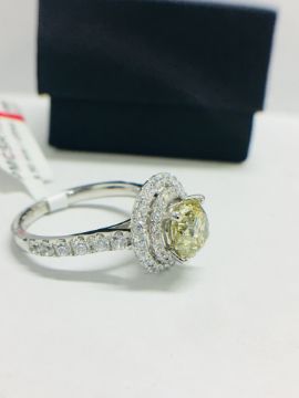1ct Brilliant cut fancy yellow diamond,Fancy yellow colour,si2 clarity,excellent cut,platinum diamond setting,0.70ct g colour vs clarity diamonds (55),6.2gms platinum 950,uk hallmark,uk size L,