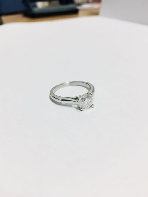 F colour and I1 clarity. Set in 18ct gold 4 claw setting, size M. hallmarked 750. Free re-sizing available. No certification but can be done for a £40 charge, please ask.