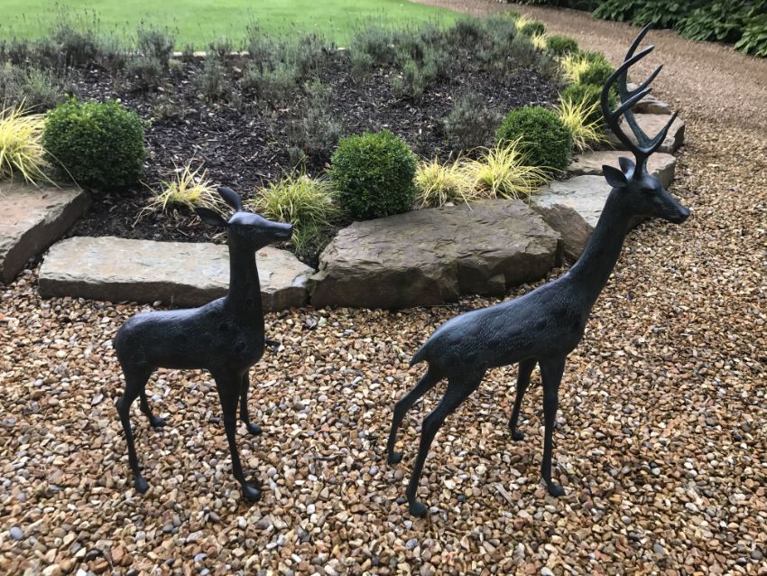 CAST METAL PAIR OF MATCHING DEERS IN VERDI BRONZE FINISH