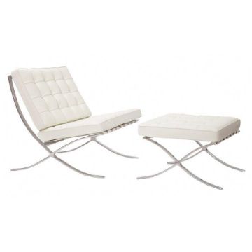 BRAND NEW BOXED LEATHER WHITE BARCELONA CHAIR AND FOOTSTOOL